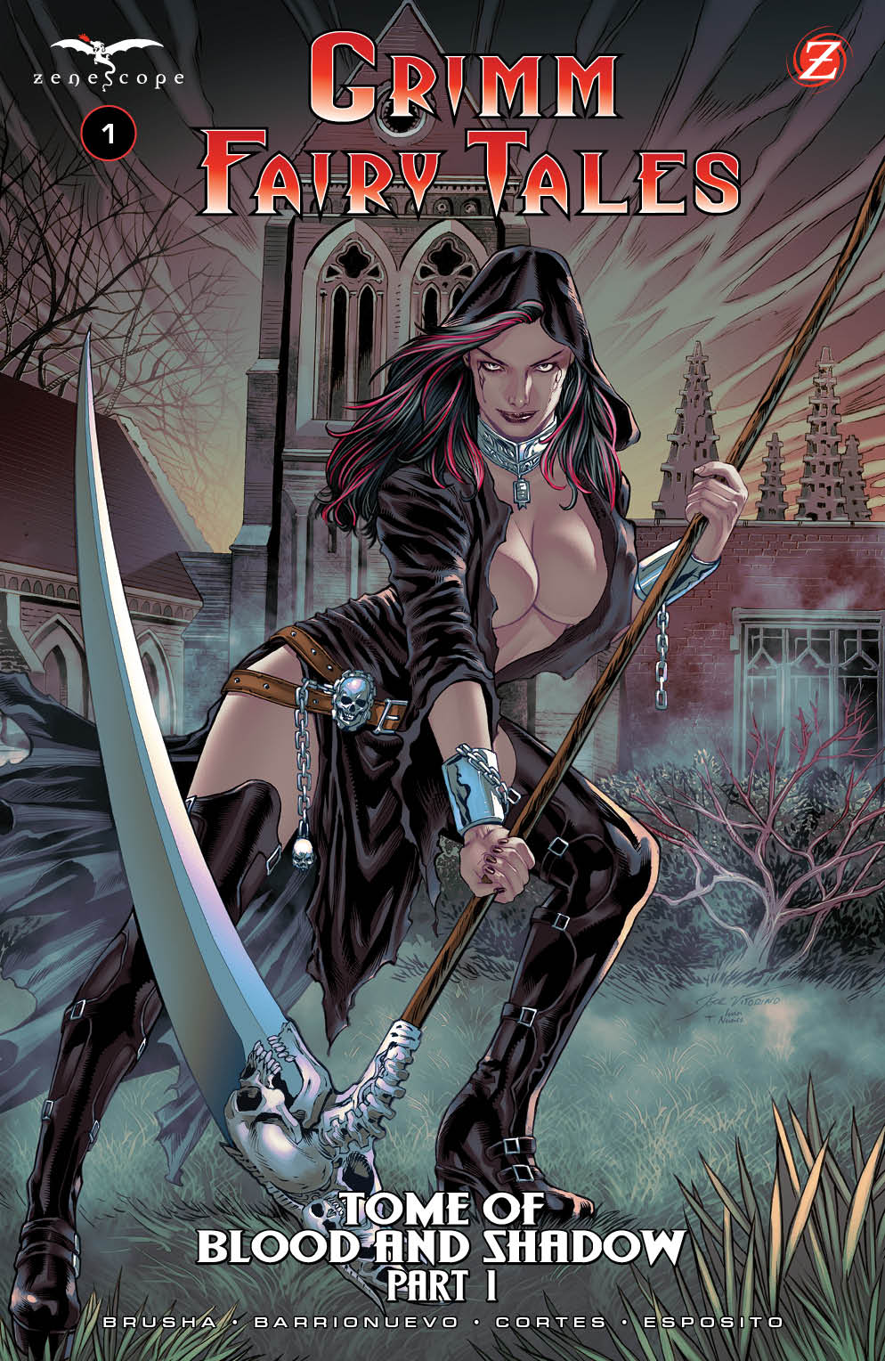 A new era for Zenescope’s flagship title begins here! An evil has been unleashed and humanity is imperiled as creatures of the night are emerging from their hiding places to prey in the light. Keres, the Goddess of Death, steps forward as the reluctant protector of humanity, wielding the Tome of Blood and Shadow, a grimoire containing the names, weaknesses, and destinies of every creature ever born from nightmare. Joined by Shang, Mystere, Skye and the rest of her team of heroes, Keres begins her fight for the very soul of humanity…and woe to those who stand in her way.