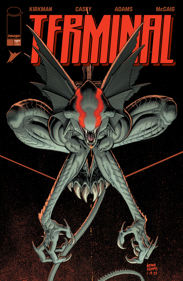 LOS ANGELES 02/20/2026 — As announced today in Robert Kirkman’s keynote address at ComicsPro, Skybound and Image Comics are unleashing the all-new comic book series Terminal this summer. The blockbuster title brings together the truly all-star creative team of writers Robert Kirkman (Invincible, The Walking Dead) and Joe Casey (Uncanny X-Men, Wildcats), alongside artists Andy Kubert (X-Men, Batman), David Finch (Ultimate X-Men, Batman), and Arthur Adams (X-Men), colorist Dave McCaig (The Walking Dead Deluxe), and letterer Rus Wooton (TRANSFORMERS). Terminal also marks Robert Kirkman’s long-awaited return to the superhero genre for the first time since Invincible. The debut issue of the year’s must-read superhero event arrives in comic book shops on July 22, 2026.