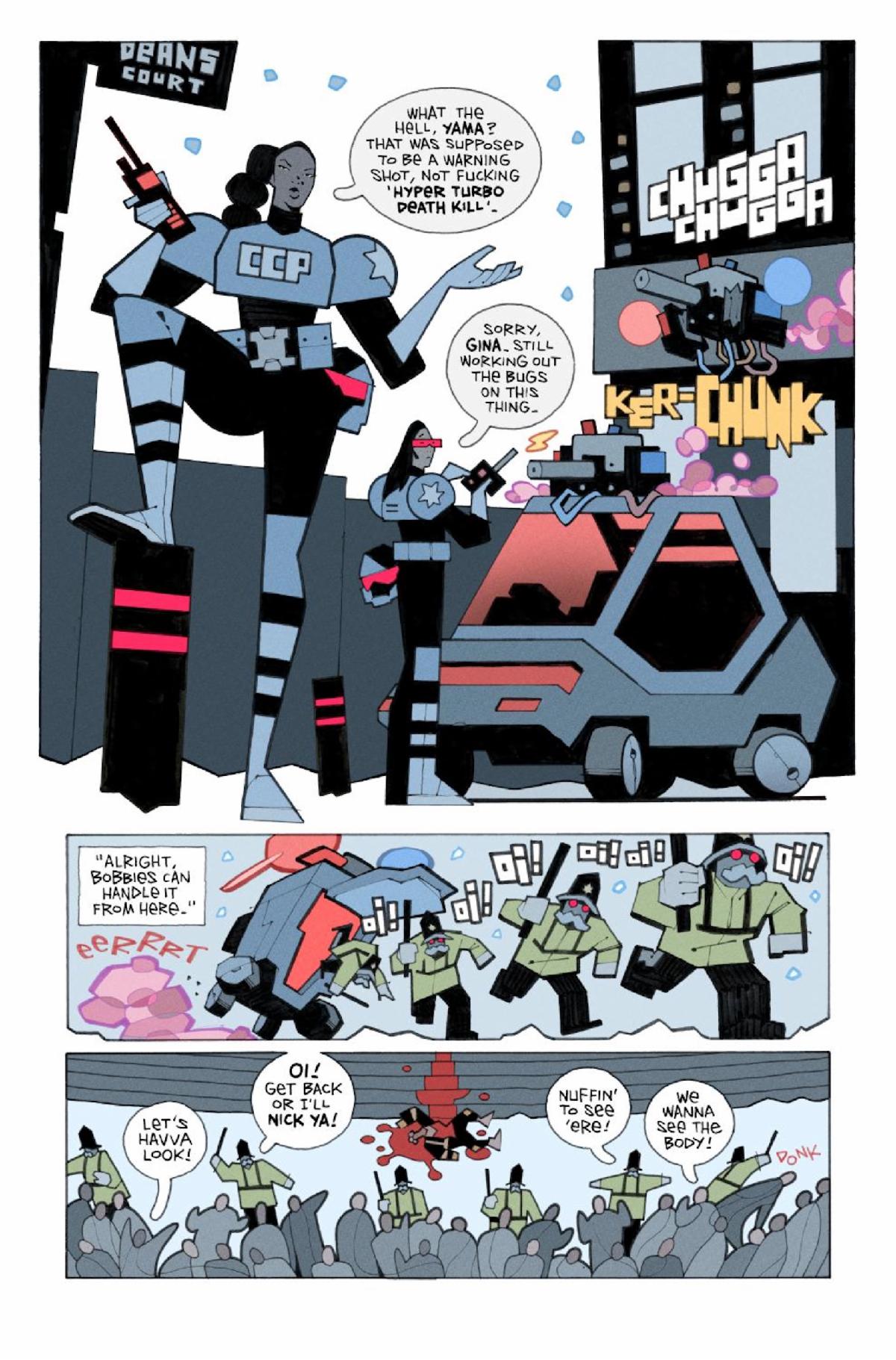 The year is 2125, and the all-powerful corporation Overcon uses its robot workers to pour our drinks and dispense our meds, all while rebuilding London’s Central City into a hyper-modern megalopolis bolted together in its own image. But as Overcon prepares to celebrate the first year of its Paradise Loop—a superfast transatlantic train that connects the Central City to New York in under 60 minutes—an unwieldy army of displaced human workers floods the streets with weapons, plotting an attack at the anniversary gala. Enter: Gina Serene, a stressed-out, pill-popping police detective in desperate need of a vacation and her ex-partner turned P.I., Lance Wingman—who are now the only thing standing between Overcon’s skyscraper-sized fist and the worker uprising that threatens to bring Britain’s capital crashing down around them.