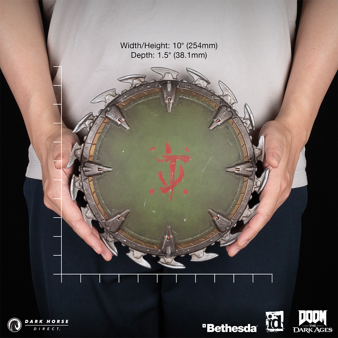 MILWAUKIE, Ore., (January 21, 2025)— Dark Horse Direct, id Software, and Bethesda Softworks have joined forces to present the DOOM: The Dark Ages – Shield Saw 10” Wall Mount!