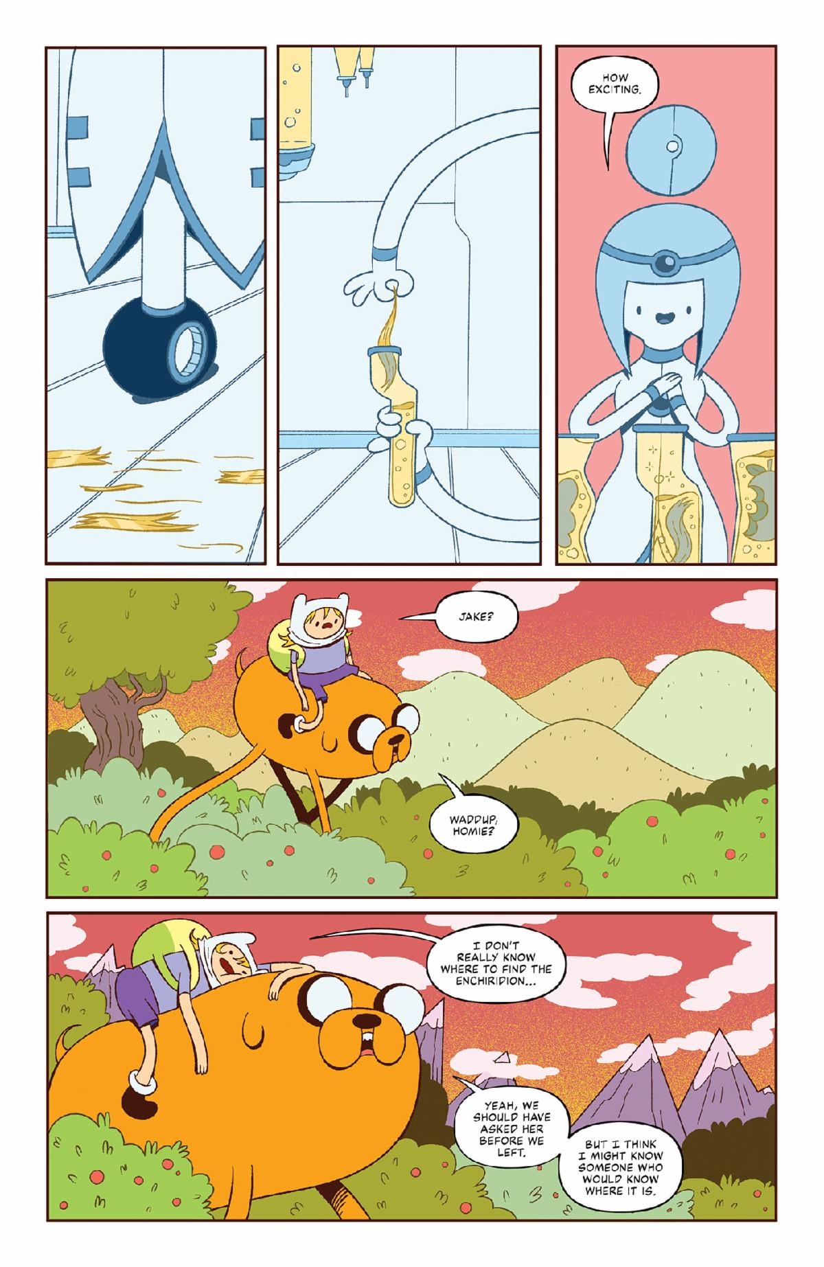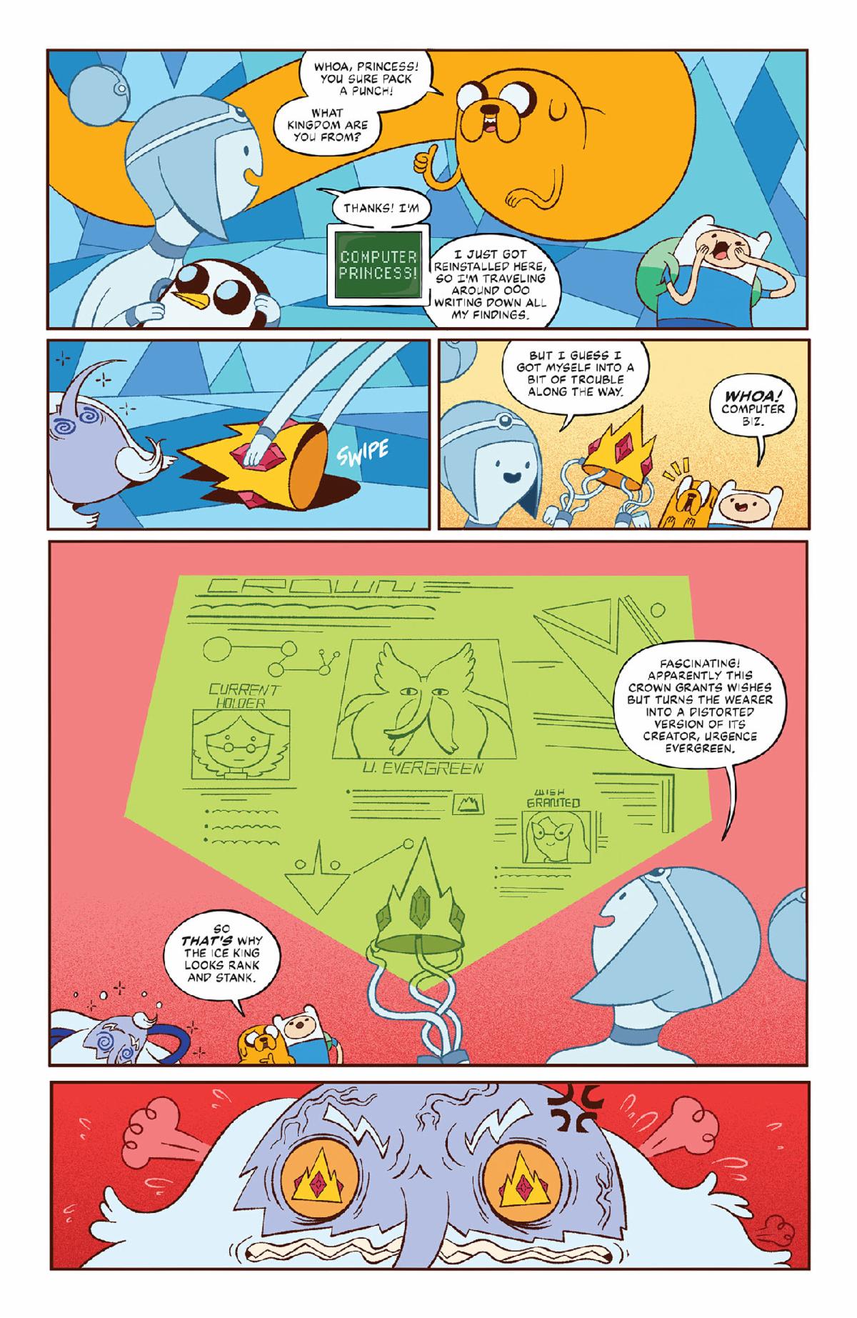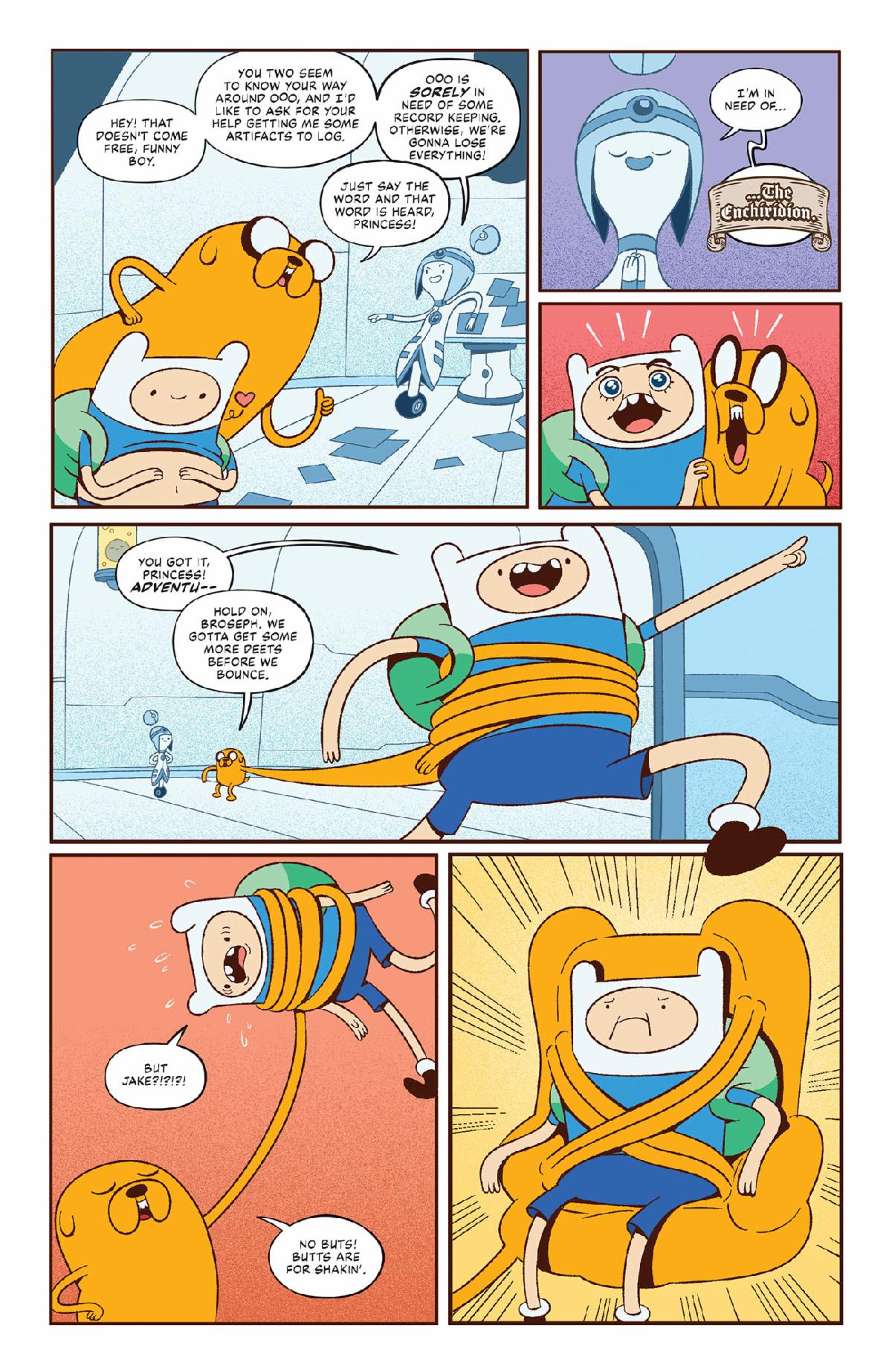 When Finn and Jake save the newly installed Computer Princess from the clutches of the evil Ice King—he just wants a bride, OK, is that too much to ask?!—the two escort her back to the Computer Kingdom, where she gives the Best of Buds a new quest: find the powerful guide for heroes, the Enchiridion, and bring it back to her so she can scan it for her digital archive! But where are they going to find it? And how?!