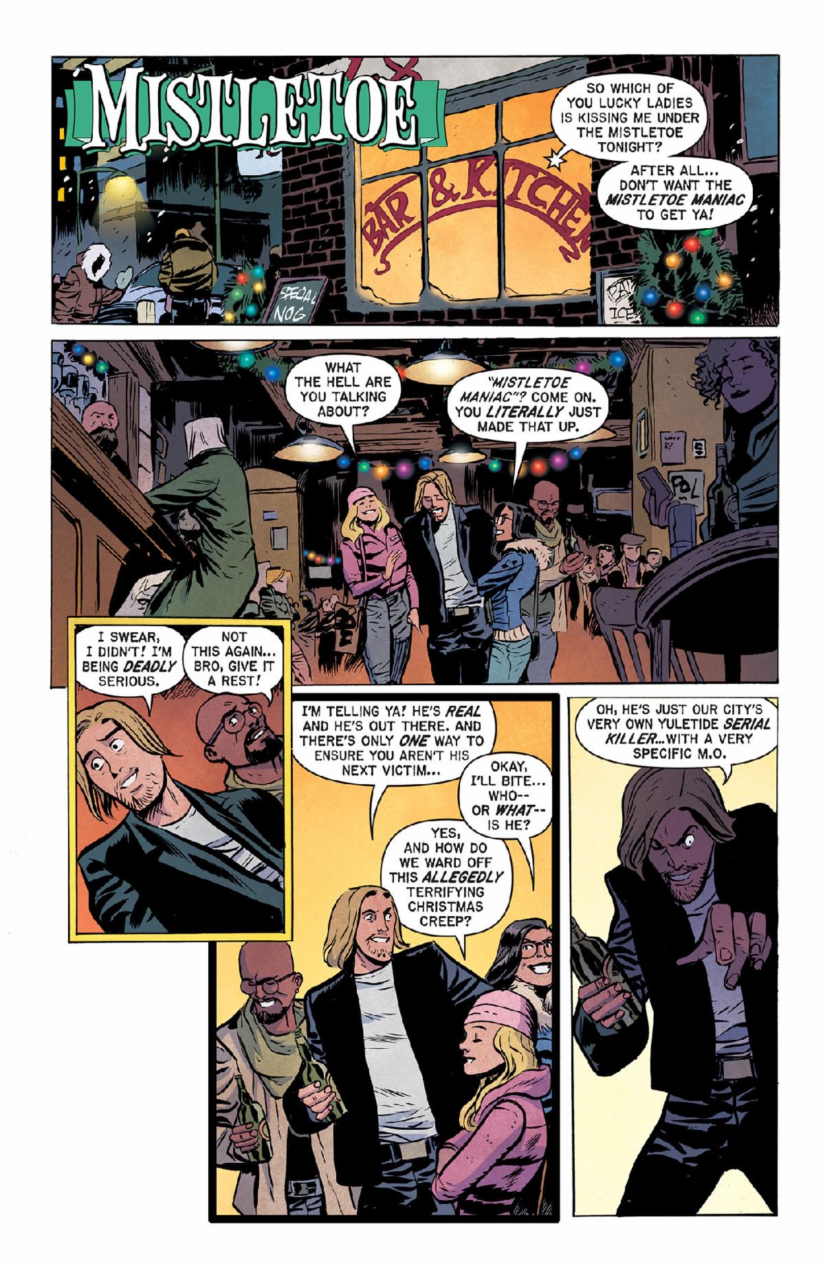 Before this year’s giant-sized tome of gruesomely gift-wrapped delights arrives in stores on December 10th, we’re aching to share a tiny appetizer of the agonies that await within … with an early advance look at the story “Mistletoe” by George Northy (Yuletide) and Dan McDaid (Shazam!, EC’s Outlaw Showdown).