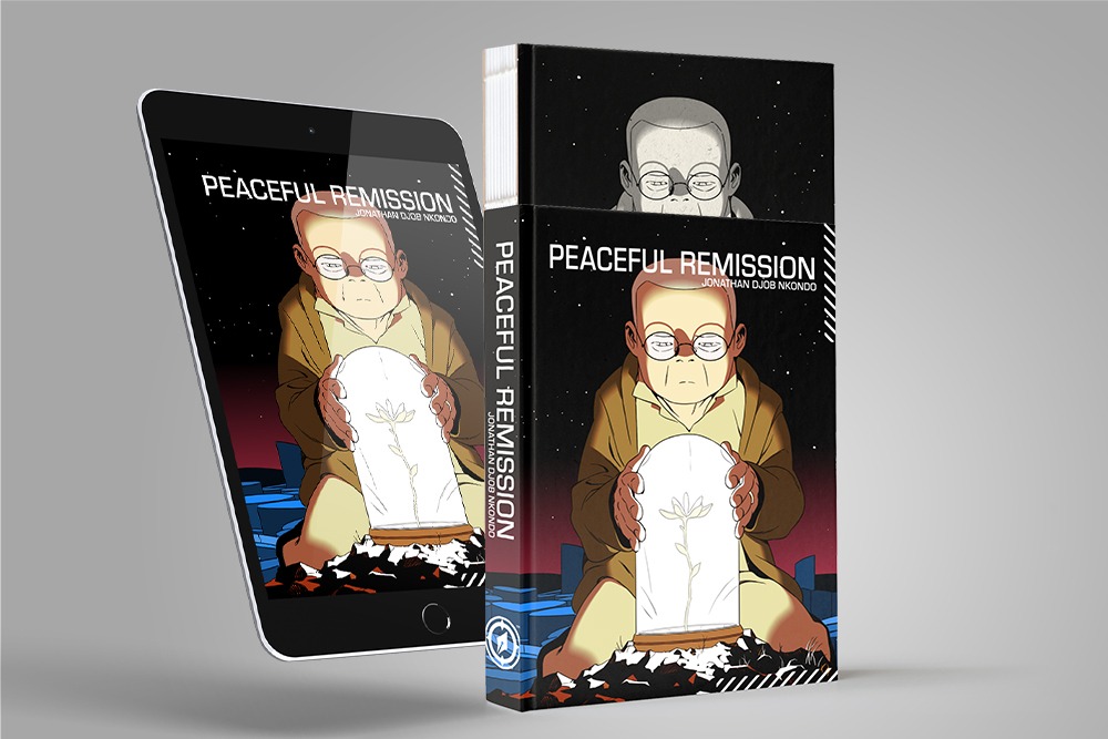 PEACEFUL REMISSIONS and WANDERING are both presented as unique, unwrapped hardcovers, with exposed binding and a color cardstock sleeve encasing each book. This somewhat-raw design juxtaposes a “scavenged” artifact feel with the sleek futuristic elements within each story setting. These 6.5×9” greyscale graphic novels are true works of art, which will also be available in a LIMITED EDITION BOXED SET featuring a sturdy illustrated slipcase, a signed and numbered bookplate, and a limited edition 48-page softcover art book by Nkondo.
