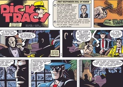 Joe: Dick Tracy’s personality for me was what Chester Gould had created for him, modified over the years. That was a tough, relentless co, who went home to Tess and Bonnie Braids. He was a mix.