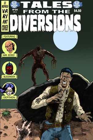 Lloyd: I think Diversions stands out because it’s a very eclectic, very high-quality anthology. We nick-named it “A Spinner-Rack Between Two Covers” because our goal is to showcase a variety of talent and styles in each other—hearkening back to the 1970s when we had, not just super-heroes, but Westerns, horror, mystery, sci-fi, fantasy, humor, etc. Each issue of Diversions is like a trip to the old-fashioned spinner-rack—you never know what you’re going to find!