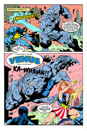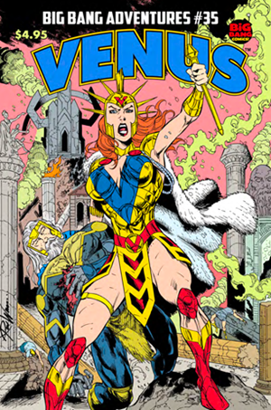 Ray: Venus is the Goddess of Love and Laughter. She was created by Gary Carlson and Chris Ecker and debuted in Big Bang Comics #1. Gary and Chris took the Goddess from Roman Mythology, and adapted her (and other Roman deities) into a comic book mythos – similar to how Stan Lee and Jack Kirby adapted the Norse myths into Thor comics, William Marsten and (later) George Perez adapted the Greek myths for Wonder Woman, or even how Alan Moore and Rick Veitch adopted Egyptian myths for 1963’s Horus, Lord of Light into a single issue.