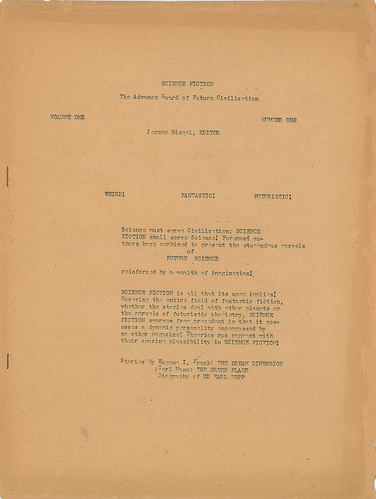 BOSTON, MA – A rare set of the first four issues of Science Fiction: The Advance Guard of Future Civilization, a mimeographed science fiction fanzine self-published by Superman creator Jerry Siegel in late 1932 and early 1933 will be auctioned by Boston-based RR Auction.