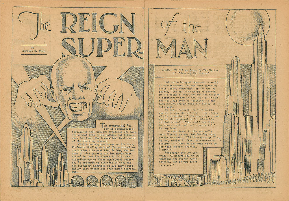 Originally written by Siegel in 1932, The Reign of the Superman told the story of a vagrant named Bill Dunn who, in exchange for ‘a real meal and a new suit,’ participates in an experiment that grants him telepathic powers. Intoxicated with his newfound abilities, Dunn seeks to take over the world, killing the chemist who created the formula.
