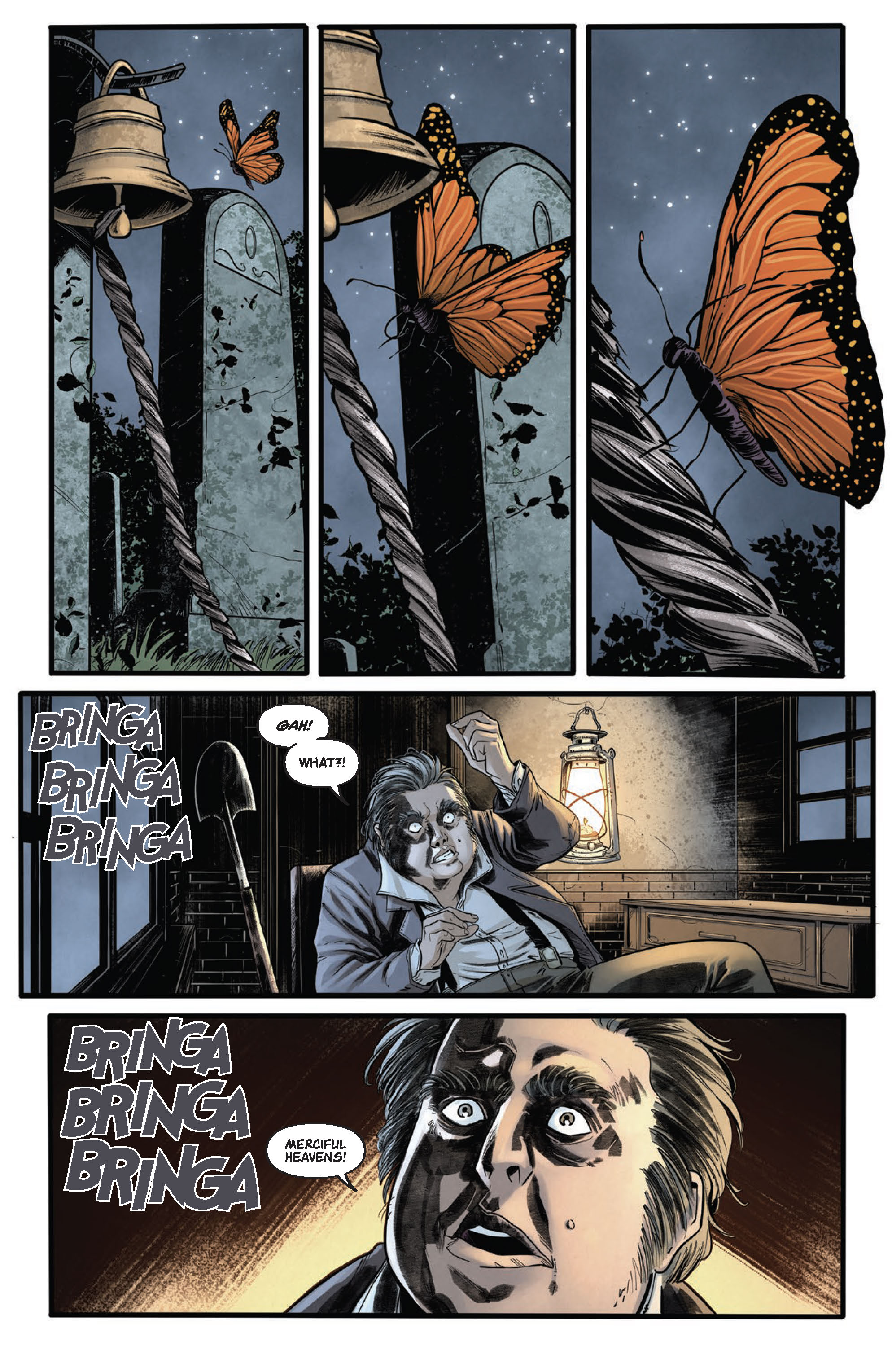 “A month later, script complete, we signed on an amazing artist tag team—Annapaola Martello and Francesco Francini,” continued Robinson. “Every page they delivered was amazing, and then our colorist, Steve Canon, metamorphosed the black and white pages into something brilliant and beautiful to look at, butterflies and blood-soaked corpses alike! It’s rare to work on a project that is inspired from beginning to end. Nectar is one of those unique experiences that comes along just a few times in a creator’s career.”
