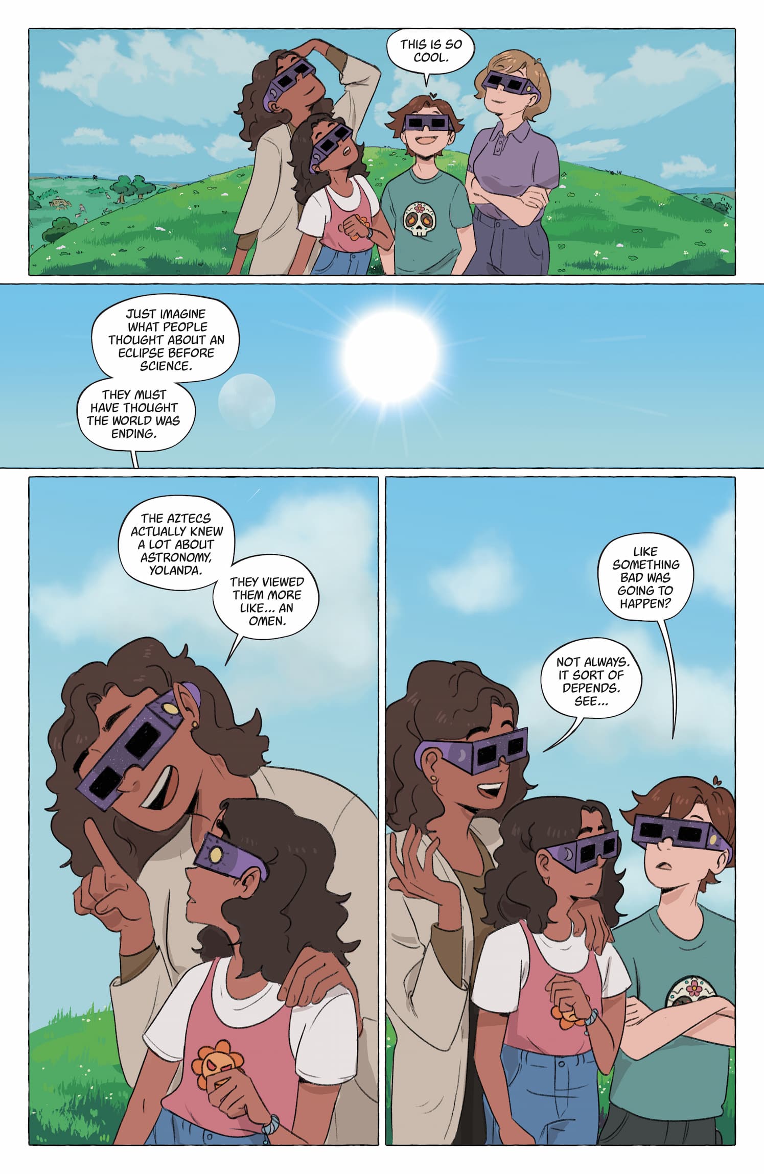Before the eclipse changed everything, Travis Muñoz’s biggest problems were math class and whether he would still be able to play on the same baseball team as his best friend Yolanda. Now, Travis has to deal with his uncle Hector telling him he’s been chosen as the next warrior priest for an Aztec sun god. Which means, it’s his job to make sure the sun rises every morning. And his job to battle feathered snakemen who attack at random. Travis could probably manage both, if it weren’t for the fact that Yolanda seems mad at him for being chosen over her. At least it’s not the end of the world…yet.